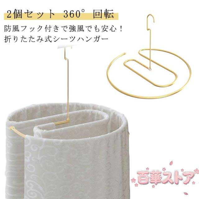 2個セット シーツハンガー タオルケット 防風フック付き アルミニウム シーツ 物干しハンガー 洗濯ハンガー 2個セット 折りたたみ 干す くるくる ハンガー 布団 バスタオル スパイラルハンガー 折りたたみ式