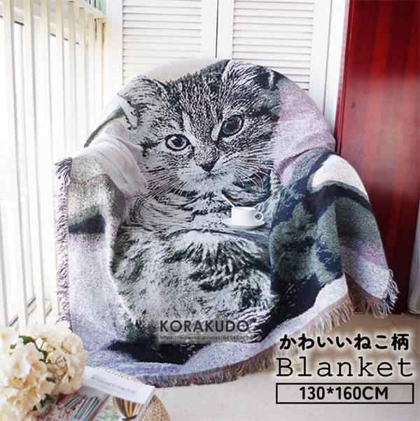 ■ブランケット 毛布 猫 ネコ柄 クリップ 高品質 ブランケット おしゃれ 大判 ホルダー 北欧 マルチカバー タオルケット ニット フリンジ