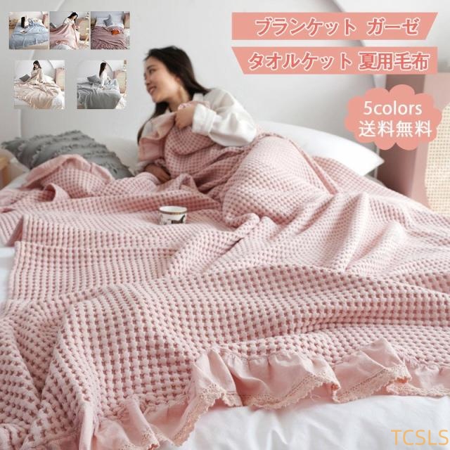 ■ブランケット タオルケット 夏用毛布 100*150 ガーゼ 肩掛け 膝掛け 無地 フリル 冷房対策 シングル ふわふわ 柔らかい サマー 夏新作
