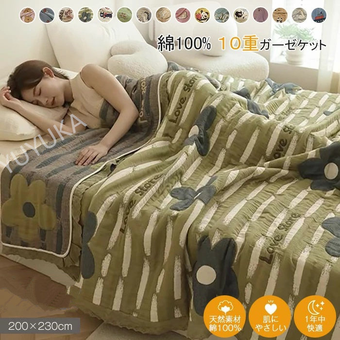 ■10重ガーゼ 肌掛け布団 綿100% コットン 無添加 タブル キング タオルケット ガーゼ 肌布団 肌掛け布団 通気性 吸湿 肌に優しい ふんわ