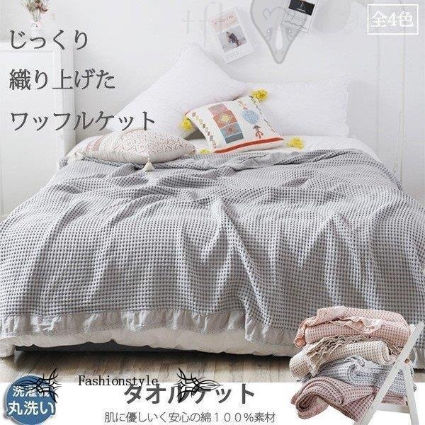 ■タオルケット オールシーズン ワッフルケット 洗える シングル お昼寝 無地 夏用 150×200cm 綿100% 肌掛け 夏掛け おしゃれ 寝具 通気