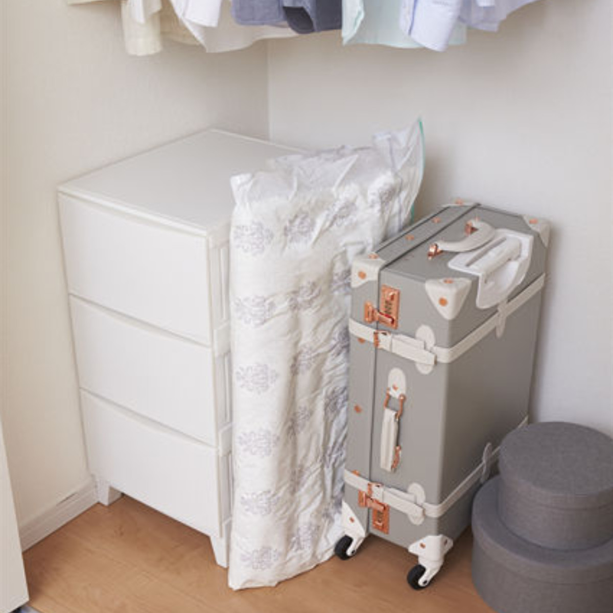 ■圧縮袋 手押し圧縮袋 毛布 タオルケット 横90×縦90cm ( 布団圧縮袋 圧縮パック 布団収納 圧縮 布団袋 収納袋 円筒型 筒状 立つ 座布団