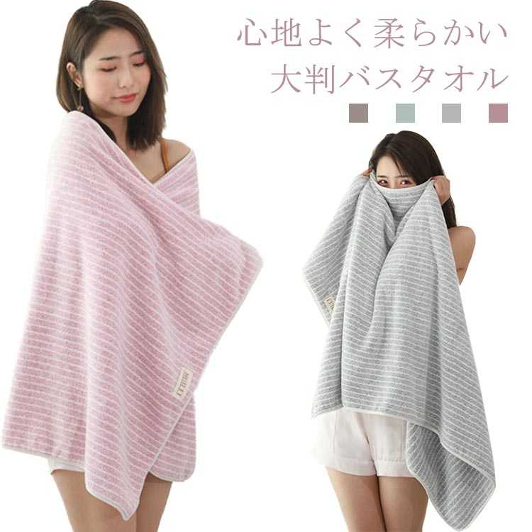 ■吸水バスタオル ストライプ ホテル仕様 2点セット 大きいタオル 肌触りよい タオルケット デイリータオル 毛布 シンプル マイクロファイ