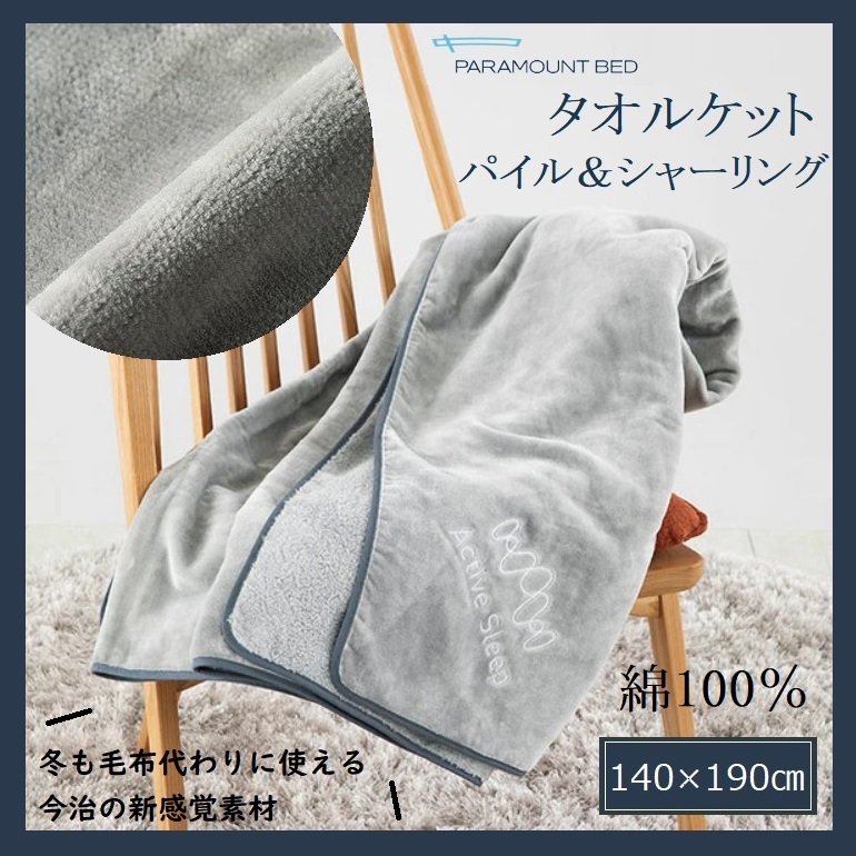 ■今治 タオルケット パイル シャーリング パラマウントベッド シングル グレー RE-ZJ01 日本製 綿100% Active Sleep 140×190 洗える オ