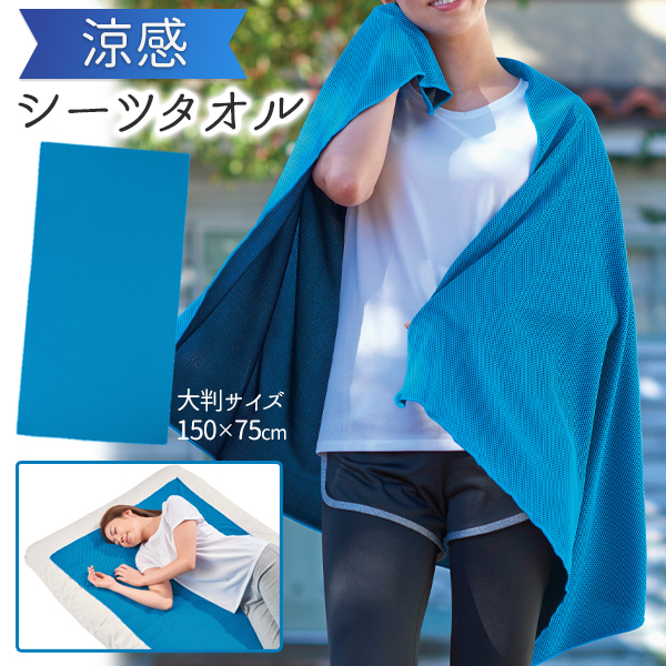 ■涼感 タオルケット 150×75cm 大判 クール 掛け敷き兼用 シーツ クールタオル アウトドア 寝具 キャンプ プール 海 室内 屋外 ひんやり