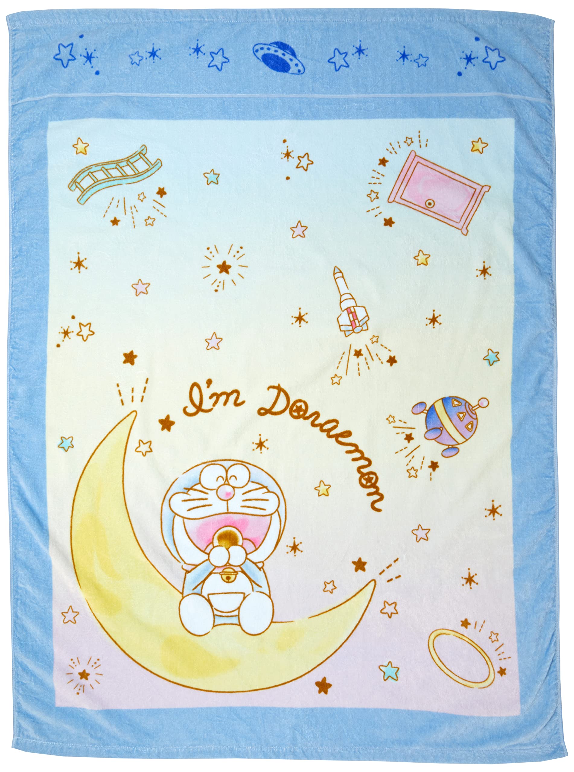 ■丸眞 タオルケット 子供用 ドラえもん キャラクター Im doraemon ブルー かわいい 綿100% 女の子 男の子 お昼寝ケット 夏用 保育