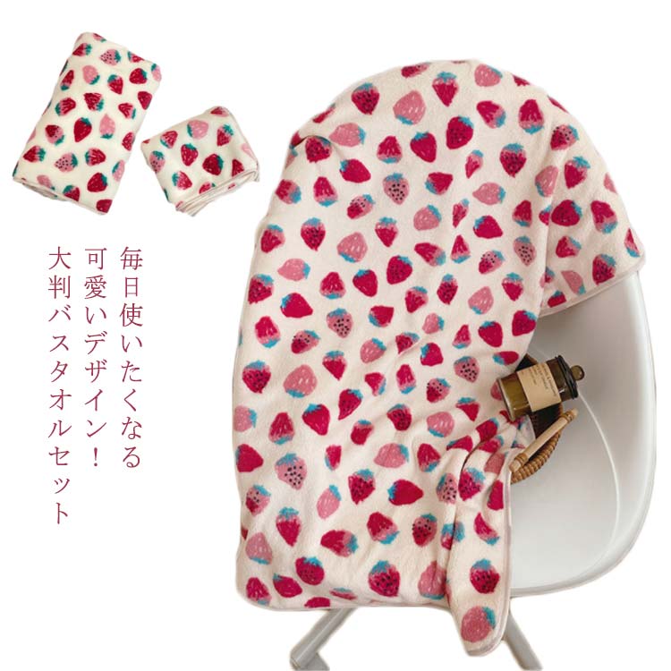 ■タオルケット 大判 バスタオル 吸水バスタオル フェイスタオル セット デイリータオル イチゴ 毛布 可愛い シンプル 大判サイズ 速乾 耐