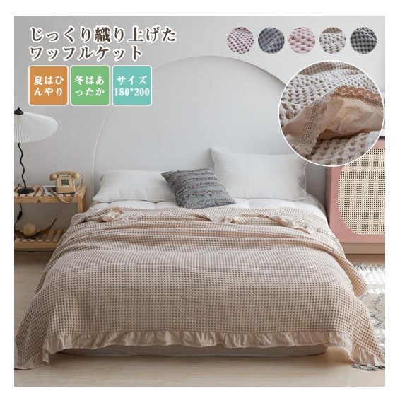 ■タオルケット ワッフルケット 洗える 大きいサイズ お昼寝 無地 夏用 通気 吸水 コットンインテリア 寝具 収納 寝具 タオルケット
