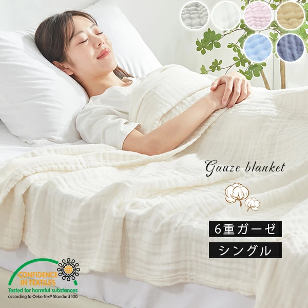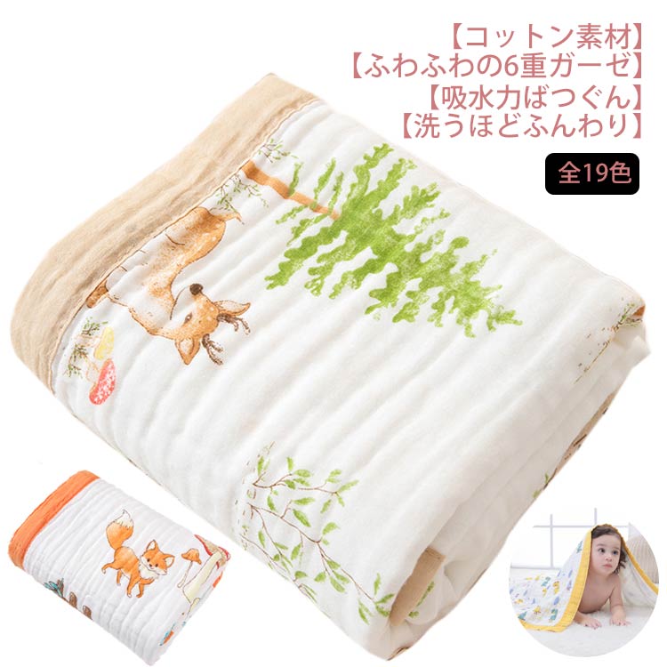 ■6重 ガーゼケット タオルケット 肌掛け ひざ掛け 綿100% ガーゼ 掛け ふわふわ 吸湿性 シングル 150×200cm かわいい ケット 夏 軽量 コ