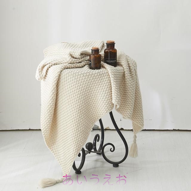 ■SNS話題で着る毛布 ブランケット フリンジ付きブランケット マルチカバー タオルケット アイボリー ニット冷房対策 フリンジ ソファ 北欧