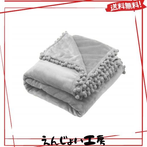 ■Mokoya 毛布 セミダブル 可愛い ブランケット 150x200cm かわいいポンポン付き ふわふわ柔らかい 多用途 タオルケット 軽量 洗える 通年