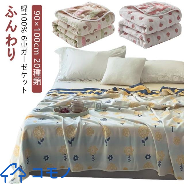 ■子供 綿100% 赤ちゃん タオルケット ガーゼケット 掛け 6重 洗える 90×100cm おくるみ 保育園 かわいい 肌掛け バスタオル ブランケット
