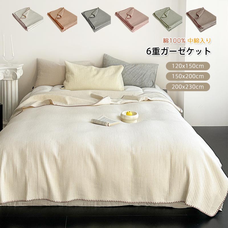 ■150×200cm 6重 ガーゼケット ケット 綿100% バスタオル ガーゼ 掛け シングル 肌掛け ふわふわ 吸湿性 かわいい タオルケット 夏 軽量
