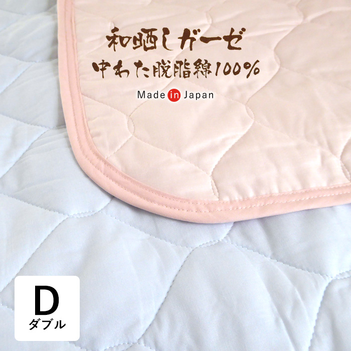 [サイズ]横:140×縦:205cmダブル厚み:約5mm[素材]側地=綿100% 中材=ポリエステル100% 120g/m2[生産地]中国[カラー]ベージュ ブラウン ネイビー[送料]全国一律送料無料[商品説明]綿100%の天竺ニット生地で伸縮性があり、まるで肌着のような柔らかな肌触りが特徴。1年間季節を問わずご使用いただける素材です。綿は通気性吸水性ともに優れている素材です。 汗をしっかりと吸収し、すばやく発散する性質を持ちます。 そのため、蒸れにくくサラサラとした状態を保ってくれます。綿素材なので冬場の乾燥した季節でも静電気が起こりにくいです。中綿入りキルティング仕様なので、程よいクッション性があり快適な眠りをサポートします。裏の四隅ゴムバンドは、敷き布団やマットレスにも対応可能。お洗濯可能でいつでも清潔にご使用いただけます。(洗濯ネット使用)※綿特有の臭いがする場合がございますが、ご使用につれて徐々に薄れていきます。※綿素材の特性上、生地表面に多少毛羽落ち、毛玉が発生いたします。※綿素材の特性上、生地表面に綿の殻が小さく残っている場合があります。洗濯表示:液温は3