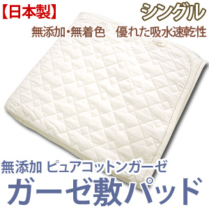 ■無添加 ピュアコットンガーゼ 脱脂綿入り ガーゼ敷きパッド シングルサイズ RP-3S 高級 敷パッド シングル 敷パット 敷きパッ