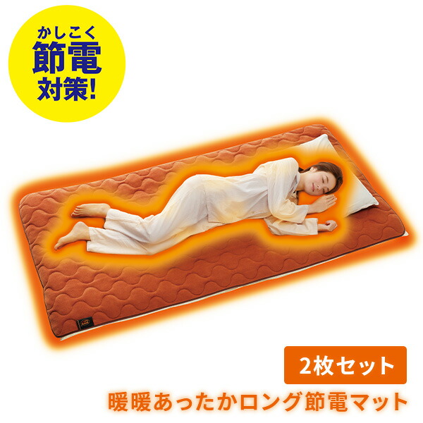 ■敷きパッド more hot 暖暖あったかロング節電マット 2枚組 オレンジ 敷パッド 敷きパット 敷パット 寝具 毛布 フリース シングル アル