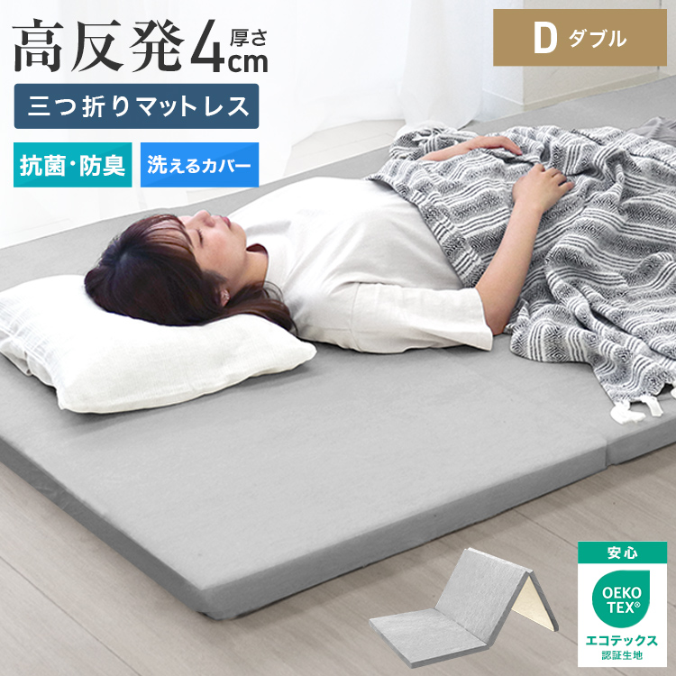 ■マットレストッパー ダブル 三つ折り 高反発 4cm 190N 25D トッパー 高品質 3つ折り 高反発マット 折り畳み マットレス マット ベッドマ