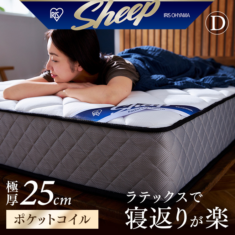 ■【開梱設置対象】マットレス ダブル 高反発 ポケットコイル ベッドマットレス ホテル ラテックス 抗菌 防臭 通気性 厚さ25cm PMTS25N-D