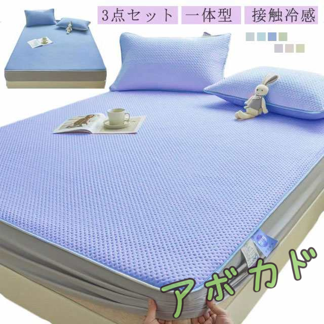 ■ボックスシーツ 冷感 防水 防水 枕カバー2枚付き パット一体型 シングル ダブル 一体型 キングサイズ マットレス カバー 接触冷感 夏用