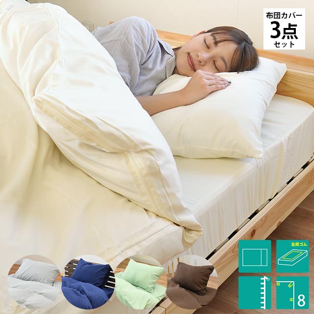 乾きが速くシワになりにくい取り扱い簡単な布団カバー3点セット。 様々な敷き布団にも合う兼用シーツタイプ。無地シンプル5色展開。 ★☆★布団カバーセット一覧はこちら★☆★ [ keyword 布団カバー 3点セット 無地 シングル 掛カバー 枕カバー 兼用シーツ 敷布団カバー マットレスカバー シーツ ボックスシーツ ワンタッチシーツ 3点 セット カバーセット シンプル 掛け布団カバー 敷き布団カバー ピローケース シングルロング 布団用 ベッド用 一人暮らし ひとり暮らし 引っ越し 新生活 新居 ]