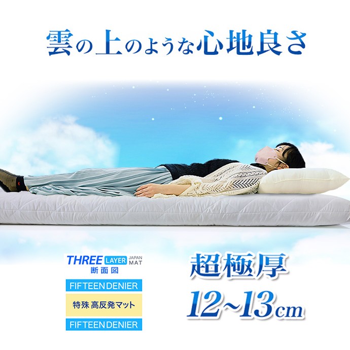 ■極厚 約12〜13cm 雲の上の心地よさ マットレス シングル 高反発 日本製 THREE LAYER 機能性寝具 マットレス 抗菌 防臭 防カビ マット 厚