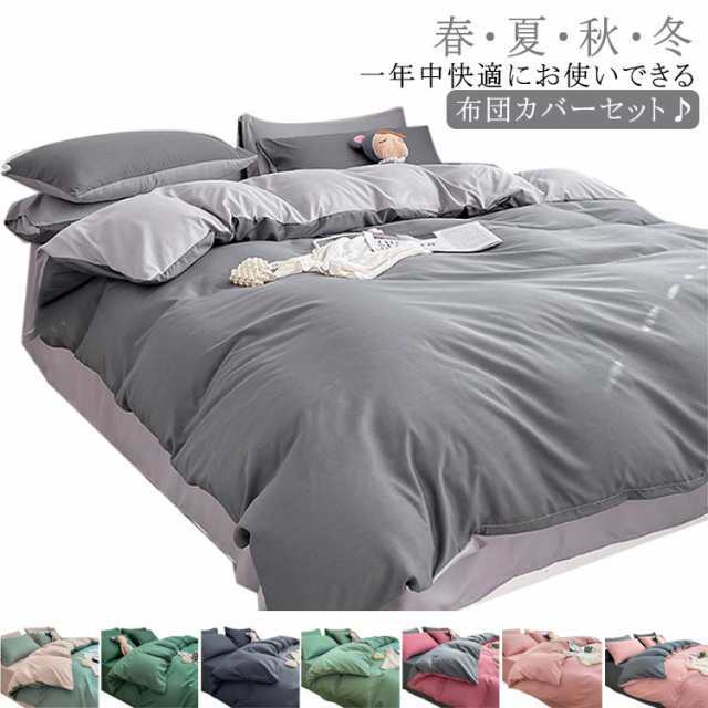 ベッドカバー ホテル仕様 無地 ツートン 布団カバーセット 枕カバー 掛け布団カバー 寝具カバー 秋 3点セット セット 通気吸汗 速乾 柔らか シングル 北欧 洗える 快眠 リバーシブル 四季オールシーズン お洒落 春 夏 ピーチスキン加工