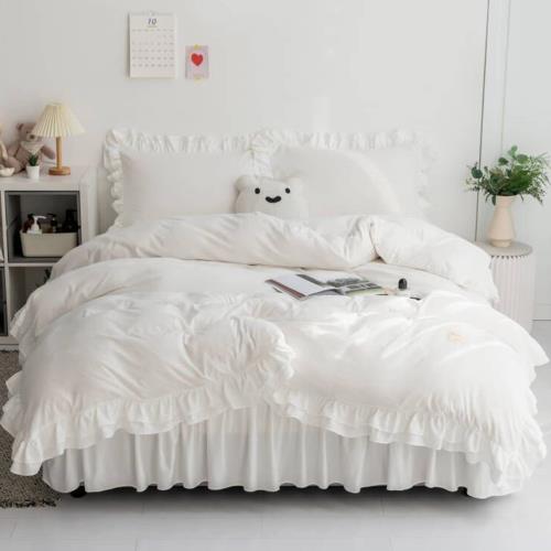 布団カバー フリル ベッドカバー 可愛い 寝具カバー 洗える 掛け布団カバー ボックスシーツ 枕カバー かわいい 布団かばー アイボリー 洋式・和式兼用 ふとんかばー ふとんカバー しんぐる (ホワイト, ダブル・4点セット)