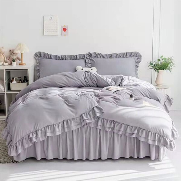 ■布団カバー フリル ベッドカバー 可愛い 寝具カバー 洗える 掛け布団カバー ボックスシーツ 枕カバー かわいい 布団かばー アイボリー 洋