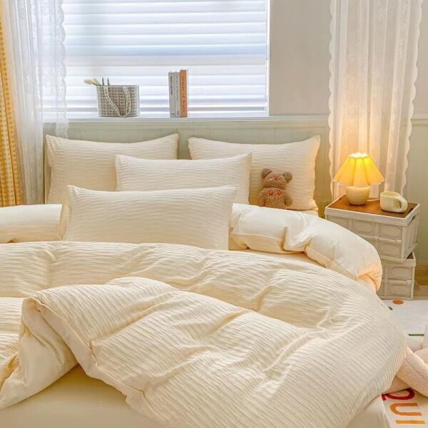 ■布団カバー 寝具カバー 夏用 4点セット 170×210cmセミダブル シアサッカー生地 掛け布団カバー ボックスシーツ 枕カバー 洋式・和式兼用