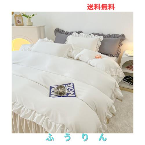 ■布団カバー ダブル 4点セット 掛け布団カバー 敷き布団カバー ダブル フリル おしゃれ 姫系 レース 無地 寝具カバー