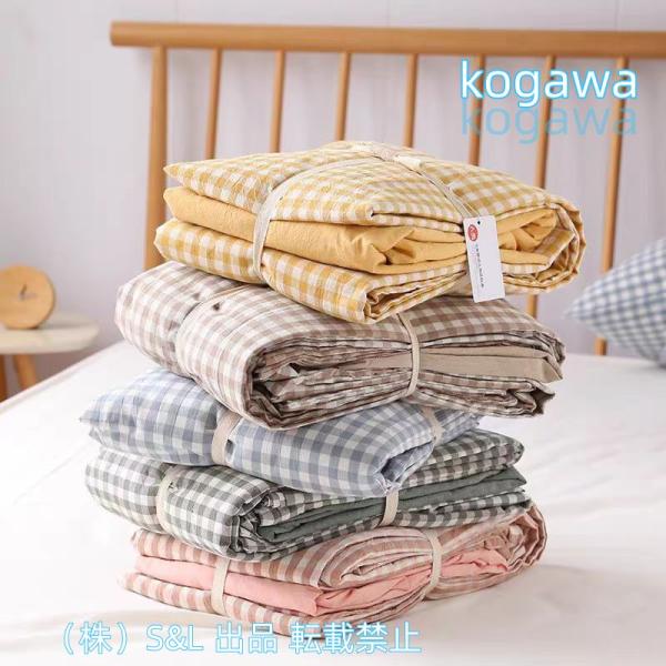 ■ギンガムチェック 可愛い 寝具カバー 3点セット 4点 綿100% 洗いざらし加工 ボックスシーツ フラットシーツ マットレスカバー ベッドスプ