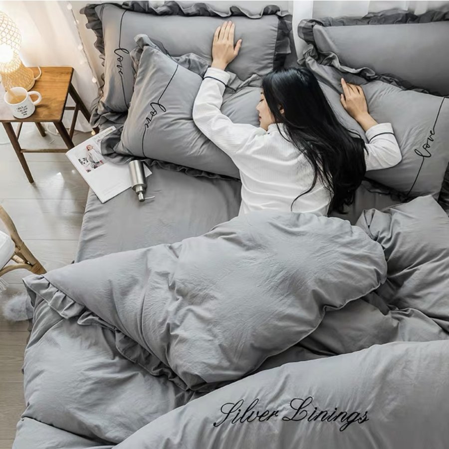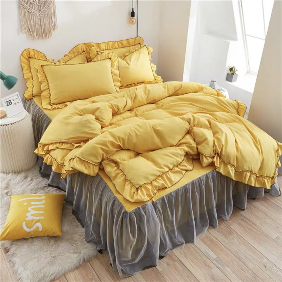■布団カバー セット 4点セット 6色 姫系 フリル 柔らか 可愛い フリル付き 寝具カバー 掛け布団カバー 布団カバー 枕カバー シーツ シング