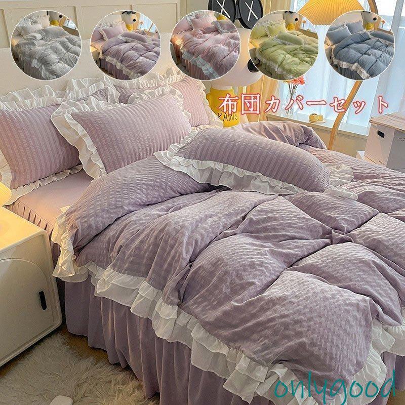 布団カバーセット フリル 可愛い 姫系 寝具カバー ベッドカバー フラットシーツ ボックスシーツ 洗える 掛け布団カバー 韓国風 シングル セミダブル