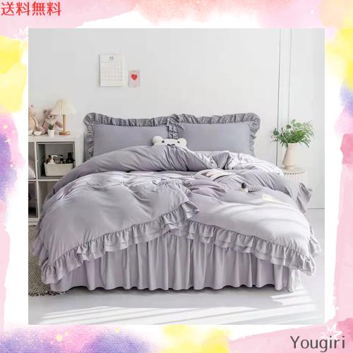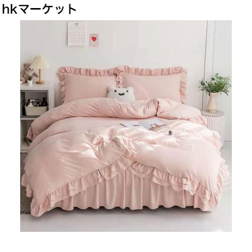 ■布団カバー フリル ベッドカバー 可愛い 寝具カバー 洗える 掛け布団カバー ボックスシーツ 枕カバー かわいい 布団かばー アイボリー 洋