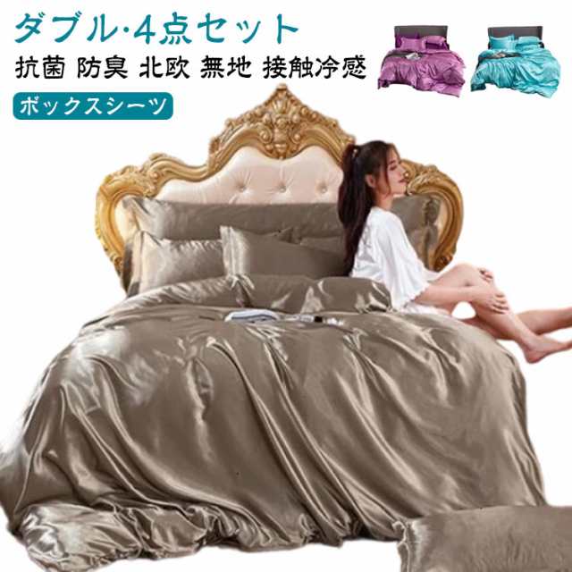 ■滑らか 接触冷感 ダブル 寝具カバー サテン織り シルクのような肌触り 防臭 ひんやり 4点セット 掛け布団カバー ボックスシーツ 枕カバー