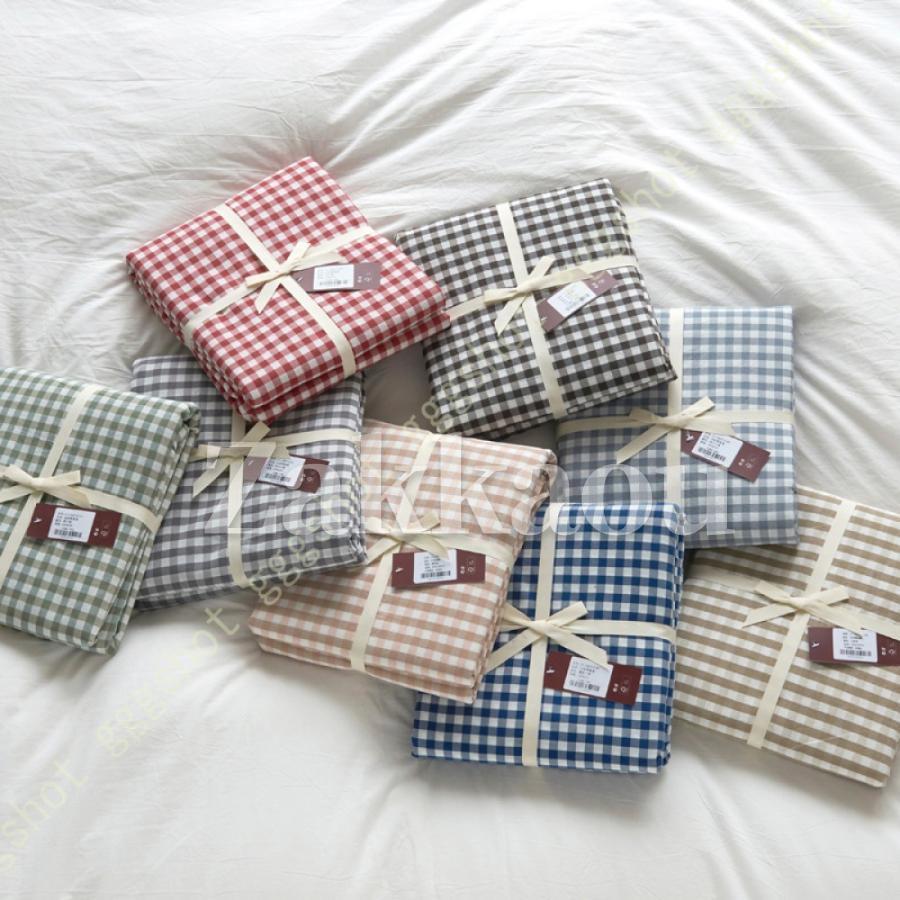 ■ギンガムチェック 可愛い 寝具カバー 3点セット 4点 綿100% 洗いざらし加工 ボックスシーツ フラットシーツ マットレスカバー ベッドスプ