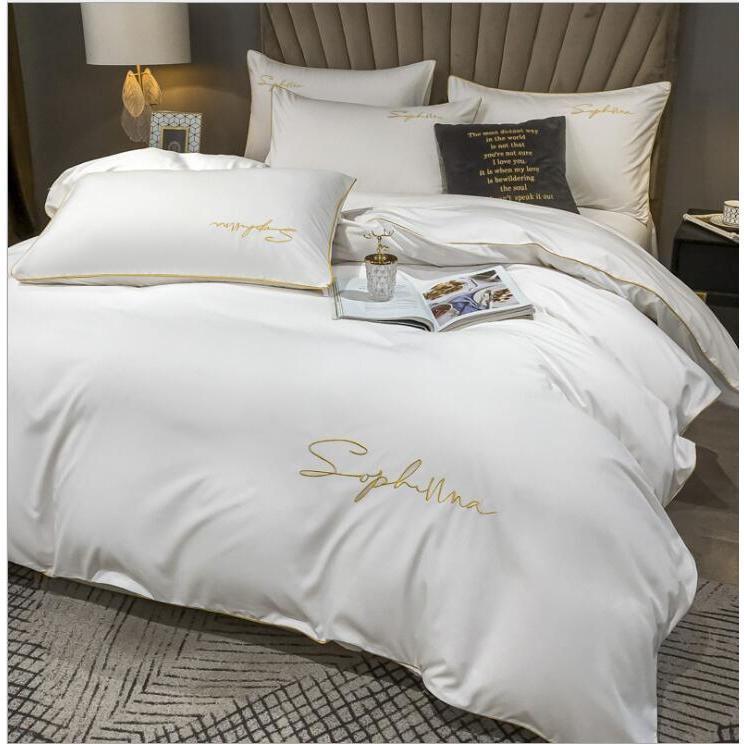 ■布団カバー4点セット 寝具カバー 寝具セット 掛け布団カバー ベッド用 柔らか エレガント 肌触り 新品未使用 四季適用 19色 セミ、