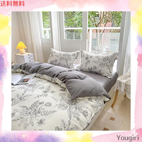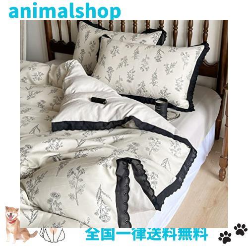 ■BUKAROOM 布団カバー 掛け布団カバー オールシーズン対応 寝具カバー フリル付き ダブルジッパー 速乾タイプ 軽量通気性 花柄 おしゃれ