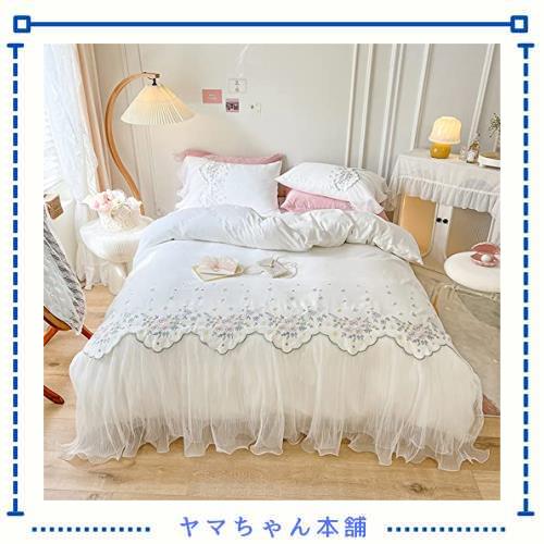 布団カバー フリル ベッドカバー 可愛い 寝具カバー 洗える 掛け布団カバー ボックスシーツ 枕カバー かわいい 布団かばー アイボリー 洋式・和式兼用 ふとんかばー ふとんカバー しんぐる (ホワイト, ダブル・4点セット)
