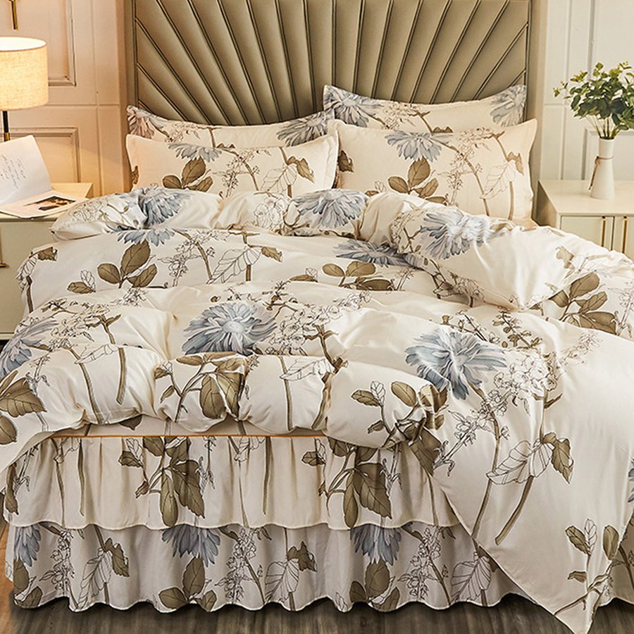 ■布団カバー ベッドカバー 花柄 綿 おしゃれ 4点セット 春 ベッドカバー 寝具セット 寝具カバー 掛け布団カバー シングル ダブル レース