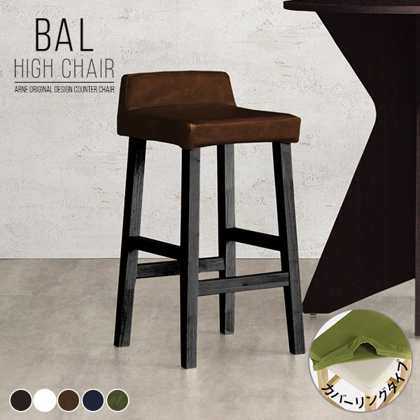 ■ダイニングチェア ハイスツール 木製 ハイチェア スツール 合皮 レザー 合成皮革 ブラック ホワイト 白 黒 BALハイチェア カバーリング/