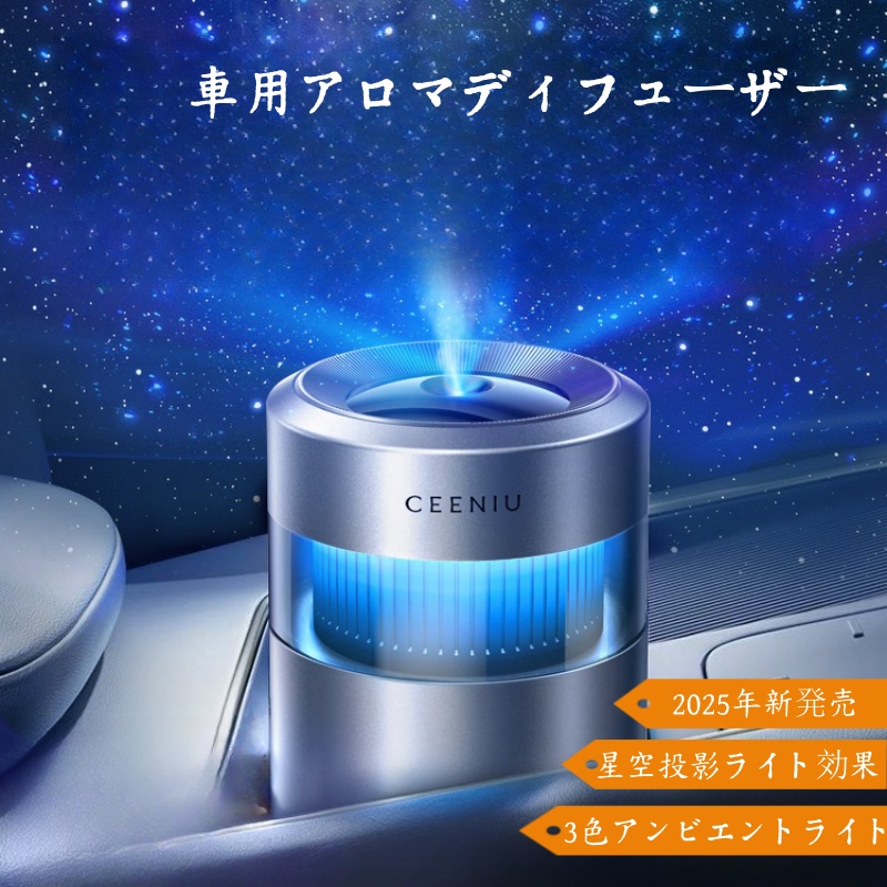 ■【2025新発売 正規品】CEENIU 車用芳香剤 カー用品 アルミ合金製 CF19 カーフレグランス アンビエントライト 自動ON/OFF 星空投影ランプ