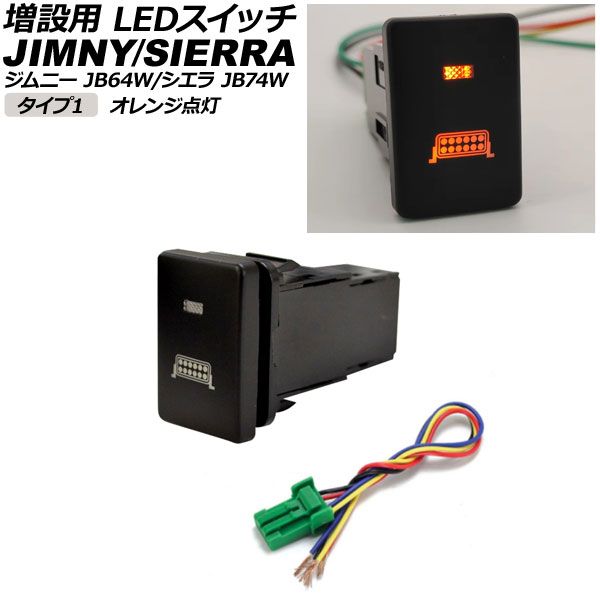 ■増設用 LEDスイッチ スズキ ジムニー/ジムニーシエラ JB64W/JB74W 2018年07月〜 オレンジ点灯 タイプ1 ライトバーマークタイプ 5ピン AP-