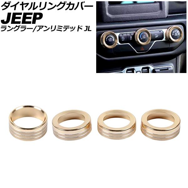 ダイヤルリングカバー ジープ ラングラー JL36S 2018年〜2025年 ゴールド アルミ製 入数:1セット(4個) AP-IT4462-AB-GD エアコンダイヤルカバー ヘッドライトダイヤルカバー エアコンリング ダイヤルカバー ダイヤルリング エアコンノブカバー ライトスイッチカバー ヘッドライトダイヤルリング エアコン 空調 エアコンノブ エアコンボタン ボタン スイッチ ダイヤル ダイアル リング つまみ ノブ ヘッドライト ヘッドランプ ライト 切り替え 調節 コントロールパネル センターパネル インテリアパネル インパネ カバー ガーニッシュ リム トリム ベゼル プロテクト プロテクター 傷予防 傷付き防止 保護 ガード アルミ アルミ合金 金 GOLD 内装 内装パーツ JL JL系 JL型 スポーツ SPORT ルビコン RUBICON 2ドア 2door WRANGLER JEEP クライスラー CHRYSLER パーツ インテリア ドレスアップ カスタム カスタマイズ 装飾 アクセント アクセサリー アクセサリ automobile motorcar オート