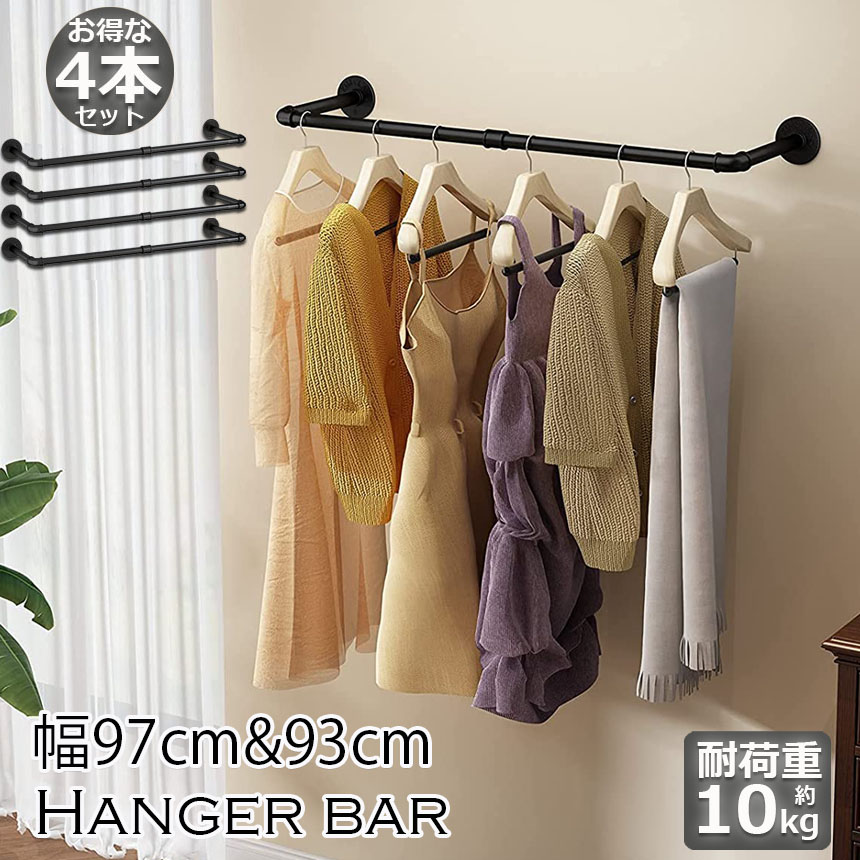 ■ハンガーバー 4本セット ハンガーラック アイアンウォールハンガー 92cm パイプハンガー コートラック 洋服ラック ディスプレイハンガー