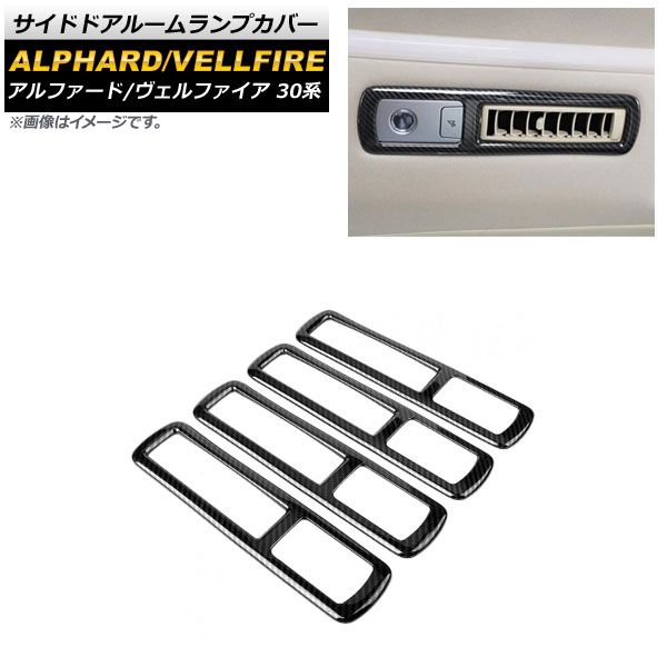 ■サイドドアルームランプカバー トヨタ アルファード/ヴェルファイア 30系 2015年01月〜 ブラックカーボン ABS製 入数:1セット(4個) AP-I