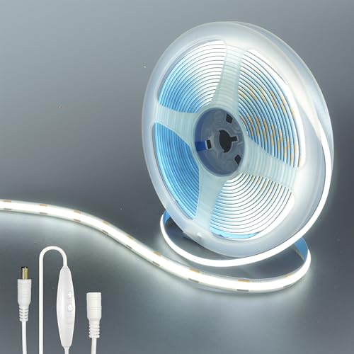 ■12V COB LEDストリップライト 調光可能 5M 昼白色 6500K 320LED/m 幅8mm 非防水IP20 CRI]=90 10W/M 両面テープ 変形可能 切断可能 DIY 家