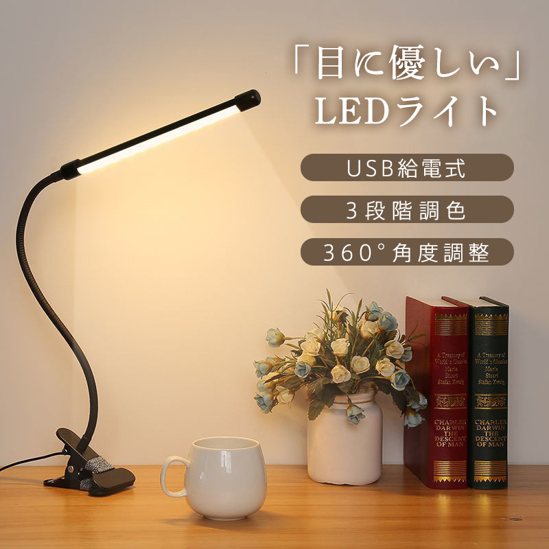 ■デスクライト おしゃれ LED クリップ クランプ 挟める 子供 明るい 卓上ライト 小型 オフィス 360度 回転 アーム 読書