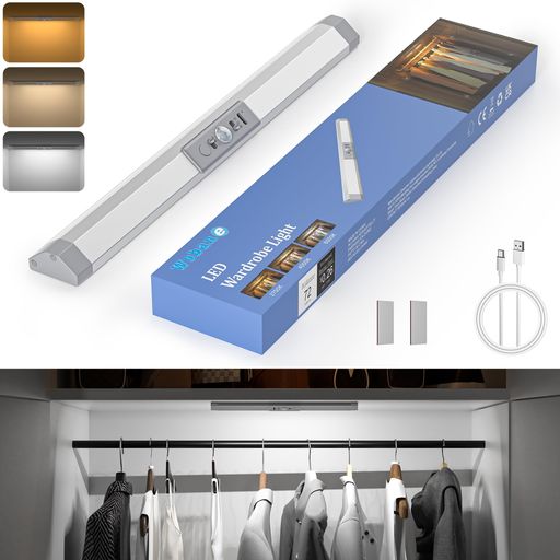 ■WOBANE 人感センサーライト 室内 TYPEC充電式 調光調色 メモリ機能 33CM クロゼットライト 目に優しい センサー照明 マグネット 配線工事