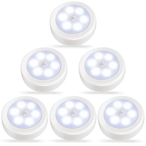 Svarog センサーライト 人感センサーライト 電池式 室内 LEDセンサーライト 屋内フットライト キッチンライト ledライト 両面テープ マグネット付き 貼り付け型 省エネ 超寿命 廊下 洗面所 非常口 玄関 キッチン 寝室用 ライト (昼白色 6個)